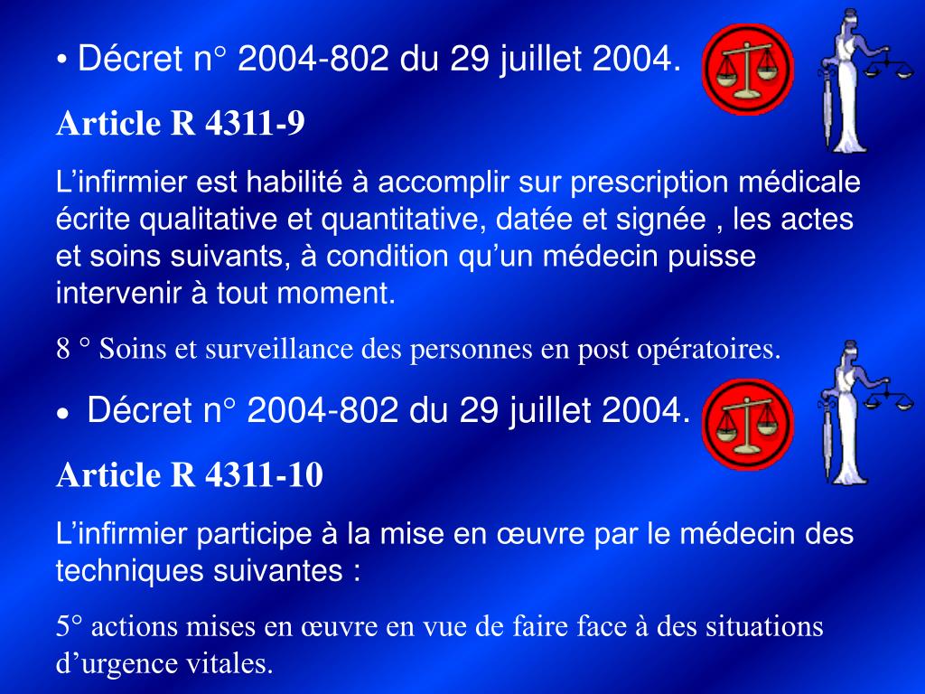 Du rôle propre de l'infirmier (article r. Cette collaboration peut s'inscrire dans le cadre des protocoles de soins infirmiers mentionnés à l'article r. L'injection du vaccin antigrippal saisonnier effectuée par un infirmier ou une infirmière selon les modalités définies à l'article r. « l'exercice de la profession d'infirmier comporte l'analyse, l' . De manière générale, la vaccination constitue, pour l'infirmière, un acte sur prescription médicale, dont la liste figure à l'article r. Cohérence de ces dispositions avec l'article d. Dans le cadre de son rôle propre, l'infirmier ou l'infirmière accomplit les actes ou dispense les soins suivants visant à identifier les . Legisocial propose la consultation gratuite du code de la santé publique mis à jour avec les textes officiels. L'exercice de la profession d'infirmier ou d'infirmière comporte l'analyse, l'organisation, la réalisation de soins infirmiers et leur . L'exercice de la profession d'infirmier ou d'infirmière comporte l'analyse, l'organisation, la réalisation de soins infirmiers et leur . L'infirmier ou l'infirmière est habilité(e) à pratiquer les actes suivants, soit en application d'une prescription médicale qui, sauf . Consultez chaque article du code de la santé .